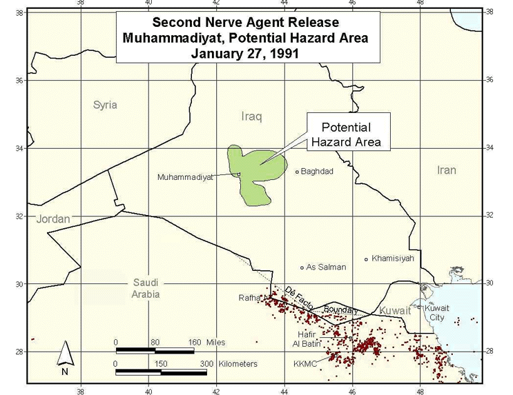 Figure 22. Second Nerve Agent Release, Muhammadiyat, Potential Hazard Area, January 27, 1991.