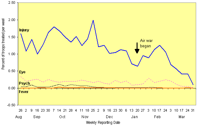 Figure 5. Marine Rates for Injuries, Eye Problems, Psychiatric Evaluations, and Fevers