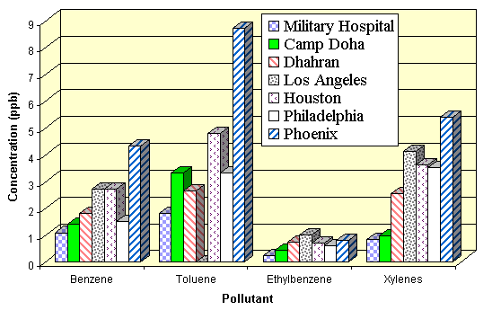 Figure 10. Median Volatile Organic Concentrations Comparisons Kuwait, Saudi Arabia, US Cities