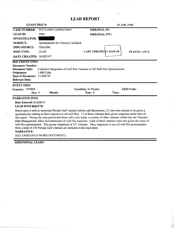 This lead sheet replaced one dated 04 Nov 97 with more current information. The superceding Lead Sheet can be found in the Library in Retired Documents.
