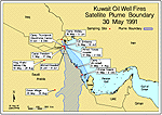 The third component consisted of plume tracking data. The NOAA and Landsat satellites were used to monitor the Kuwait oil fires and associated smoke plumes. Data acquired from the satellites were merged with the air dispersion modeling data to achieve agreement between plume location and contaminant concentration levels.