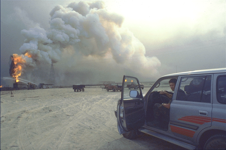 Figure 15. Oil well fire emitting white smoke (photo by Jack Heller, USACHPPM, May 1991)