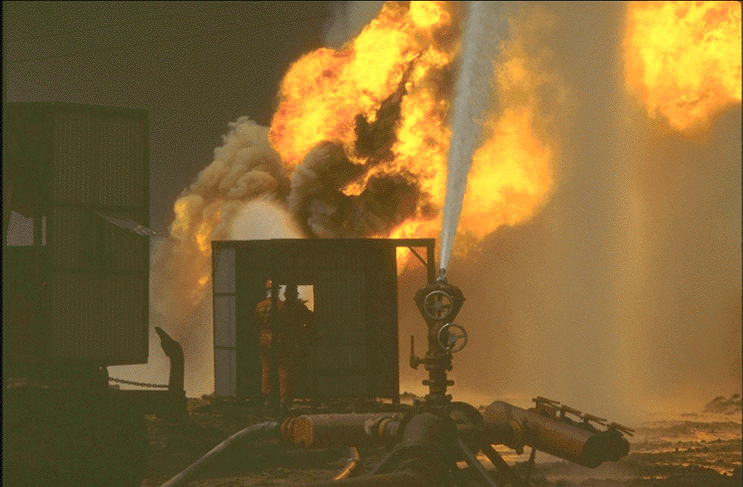 Figure 25. Well extinguishing operation using sea water (photo by Jack Heller, USACHPPM, May 1991)