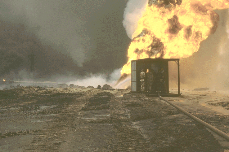 Figure 26. Well extinguishing operations using sea water (photo by Jack Heller, USACHPPM, May 1991)