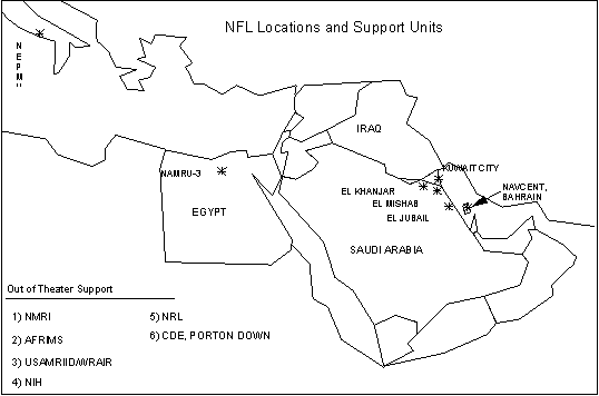 by the NFL in El Mishab, El Khanjar, and Kuwait City; and out of theater support for the