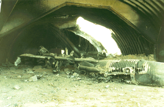 Figure 7. Destroyed Aircraft Inside Damaged Aircraft Shelter.