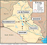 Figure 3. Fallujah, Al Muthanna, Muhammadiyat, and Ukhaydir in relation to Baghdad